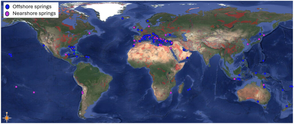 L’équipe de la chaire GeEAUde a publié un premier article scientifique en décembre 2024 sur la distribution spatiale, les facteurs de contrôle et la probabilité de présence des sources sous-marines et côtières à l’échelle mondiale.